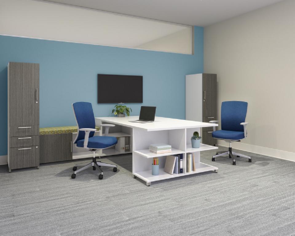 Description New Benching and Desking solutions customized to fit your needs. From open, collaborative spaces to focused environments and height adjustable worksurfaces, we have you covered. Freestanding and mobile storage pieces available to pick and choose what works best for your environment. Power and data are easily accessible. Available in a variety of colors and finishes. Call for your custom quote,