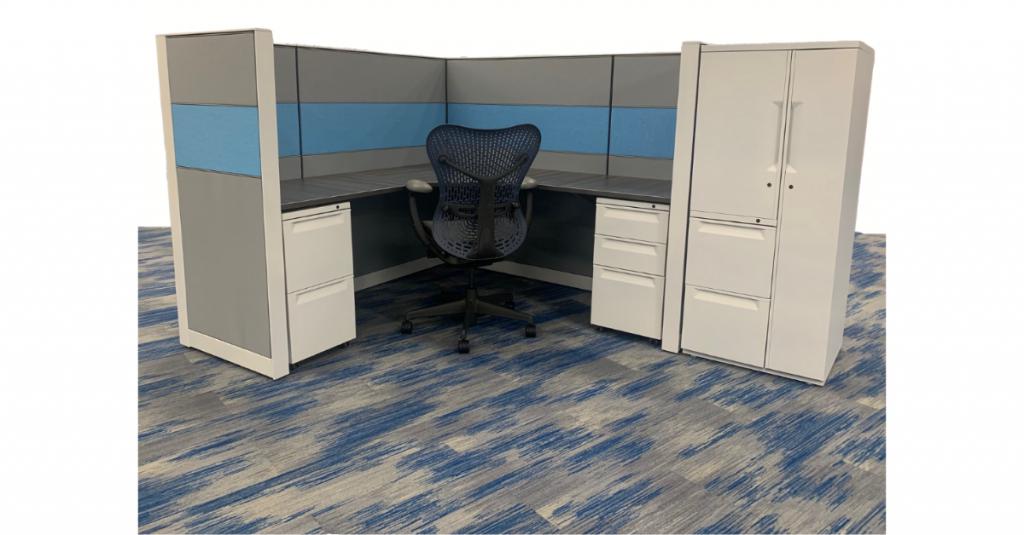 Description Our Herman Miller Canvas workstation is a title system. All finishes are customizable. You will be able to select your panel fabric, your laminate worksurface, paint trim for drawer storage & panel trim.