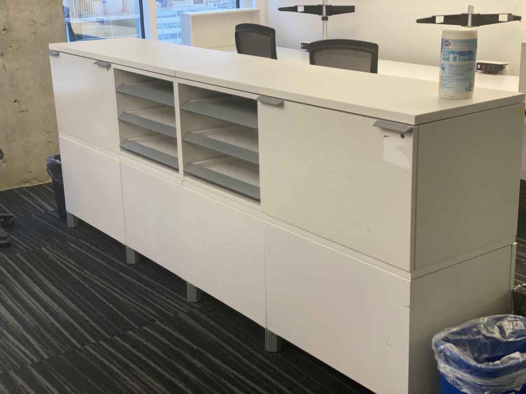 Description Available 02/23, 30 x 72" White benching stations by Knoll. These stations are clean, modern, and in good condition. Great for any open office space. *GN_02/23* (*OP)