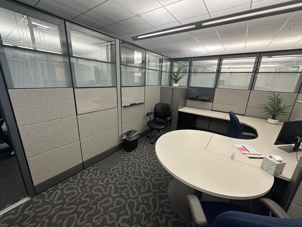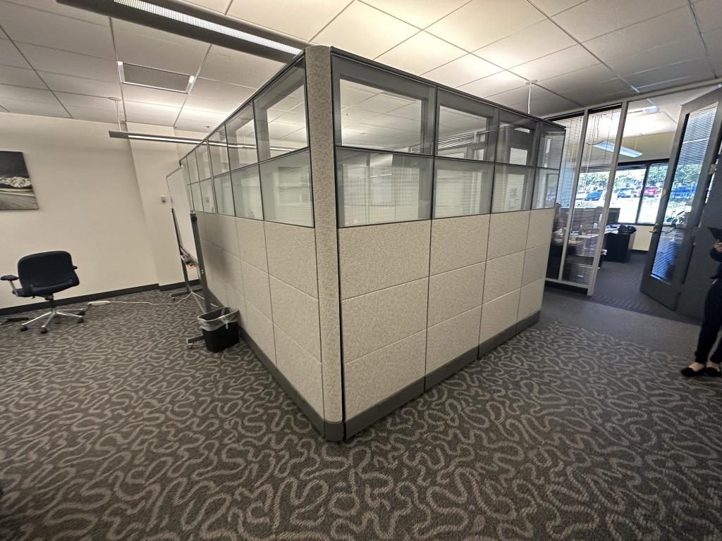 Primary sizes are 8'x10', 15'x8', 14x15 and we can make any size out of 30" and 24" wide panels. Power and overheads available as well as custom worksurface or build outs.