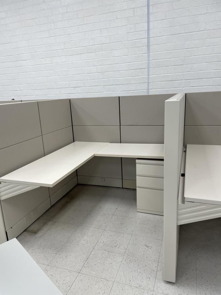 Description We have this Herman Miller Ethospace that is 5’x5’x54”T naturally. It comes with a BBF pedestal and white surfaces.