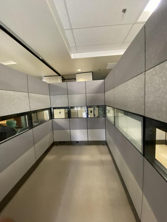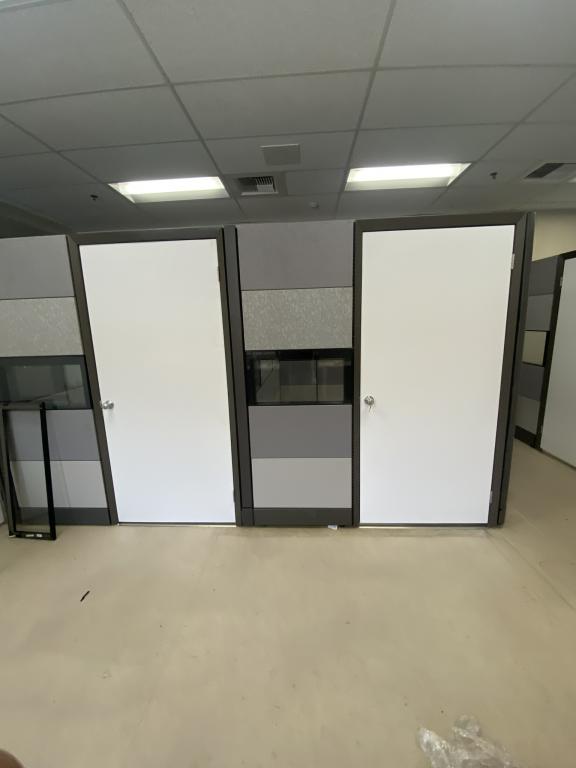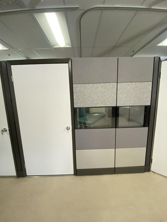 Description We have these 86" tall Herman Miller Ethospace with glass that come with an authentic Herman Miller grey fabric. These tiles can be interchanged with other colors in stock and the doors can be laminated to your specific colors.