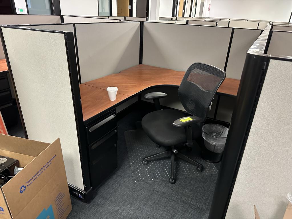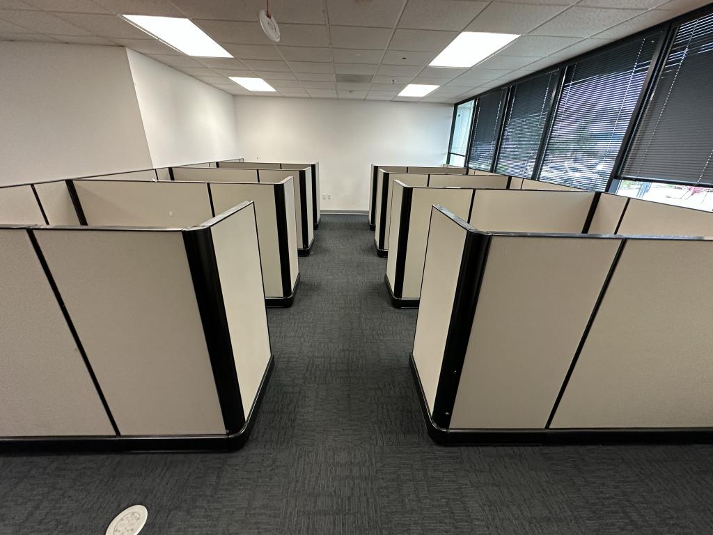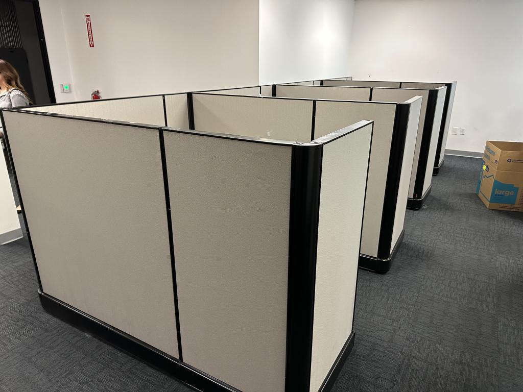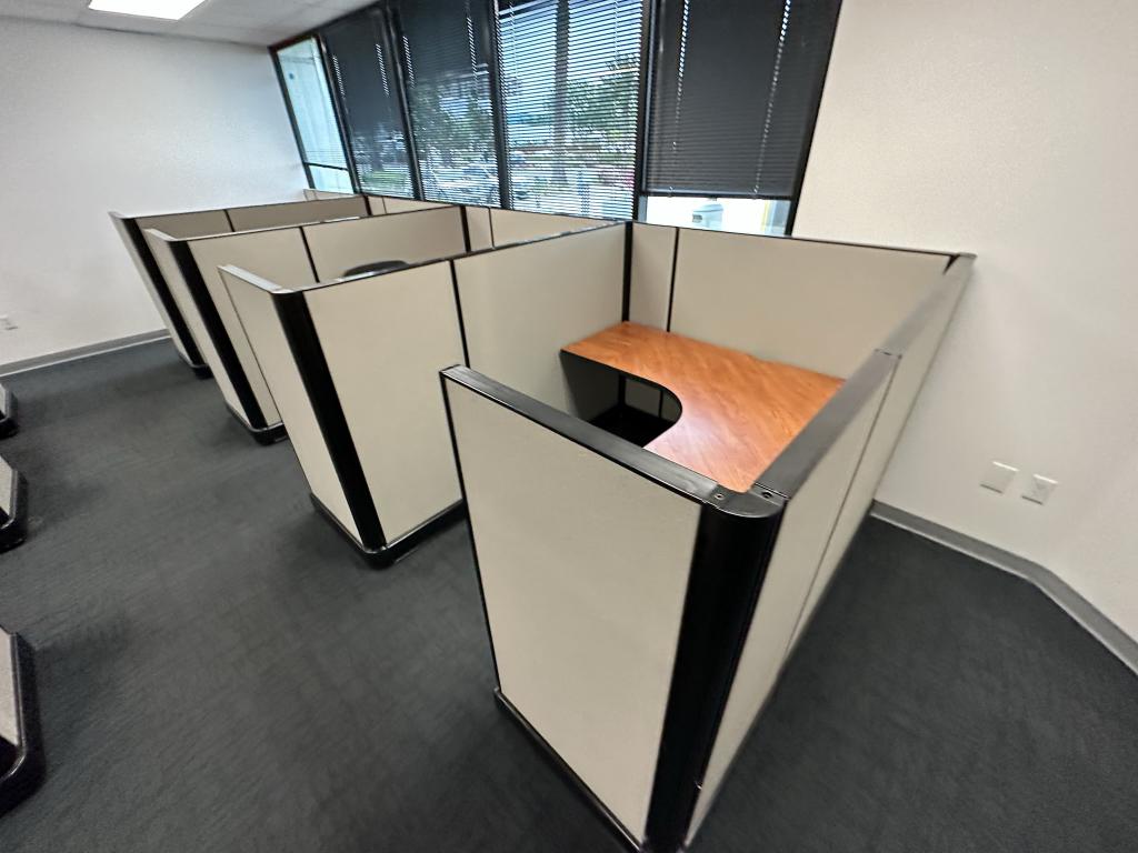 Description We have these Herman Miller A02 Dark Tone that are 5'x6'x53"T that come with a bbf pedestal and power on the spine. These stations have a beige fabric with cherry surfaces and dark tone trim.