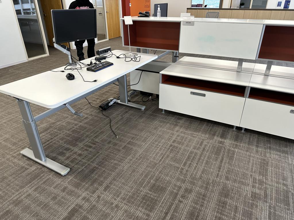 Description We have this Steelcase Power base stations that come with a 6' power beam, 4' wide credenza for a return, and 6' wide electric height adjustable table base.