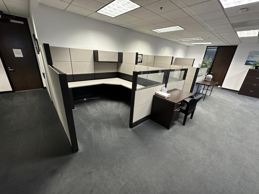Each cubicles comes with a pedestal file cabinet and overhead with task light.