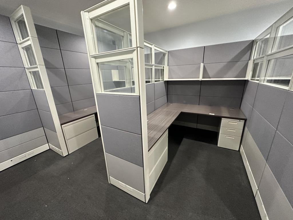 Description We have these 86” tall Herman Miller Ethospace 6’x8’ with double glass on aisle panels. These stations come fully loaded and you can build them to your design.