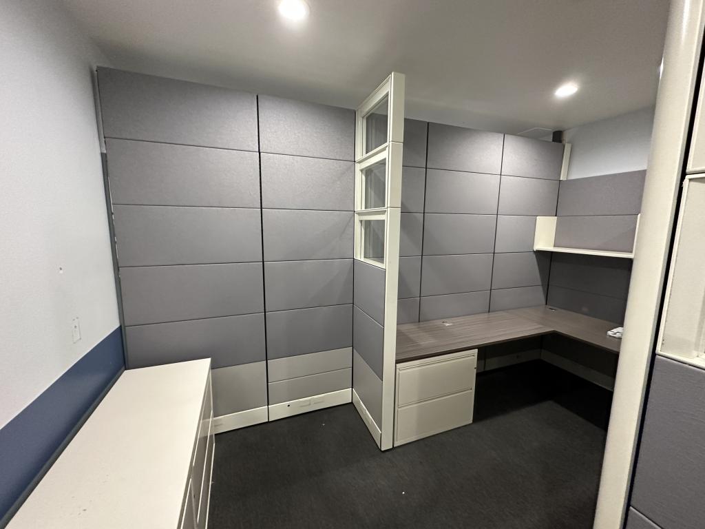 Description We have these custom 102” tall wall divides that are on a 86” tall frame with a 16” stacker added to it to make the 9.5’ in height. Divide any room with ease with this private office wall divider.