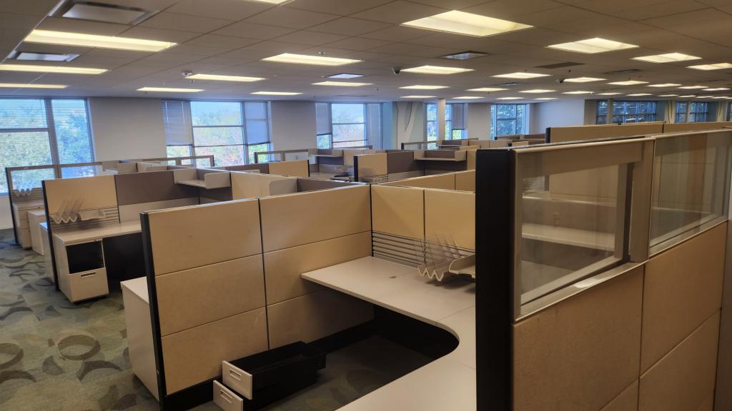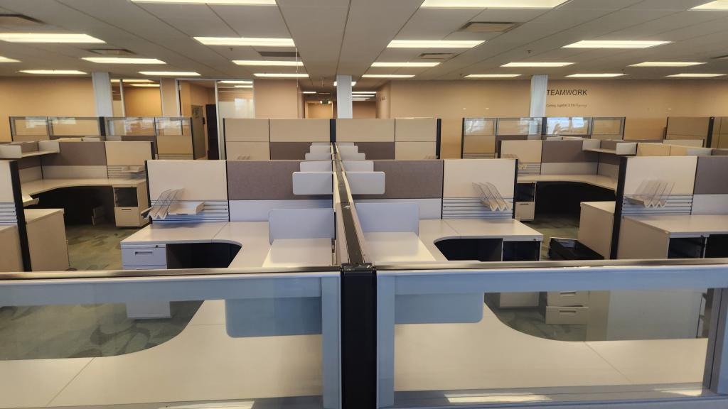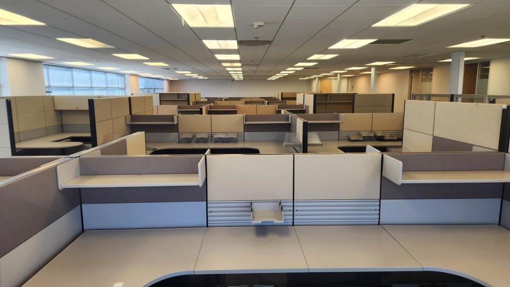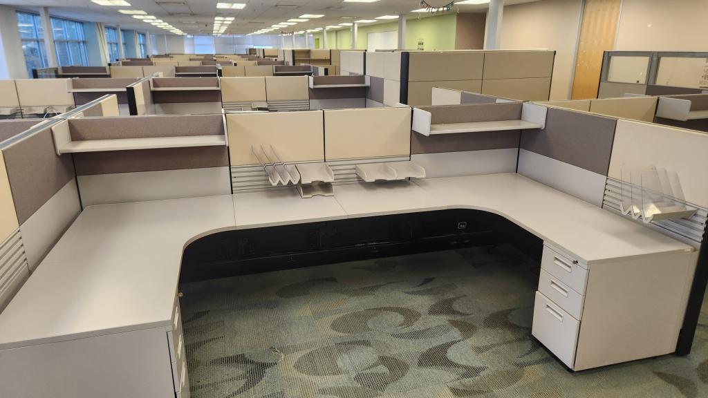 Description We have these Ethospace 6'x6' bullpen stations 54" tall station with BBF pedestal. These stations have a tool rail and power down the spine with an open shelf. 30" deep surfaces and pedestals.