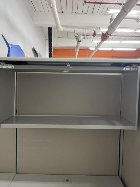 Choice of (1) 36" Wide gray shelf and/or (1) 36" Wide overhead bin