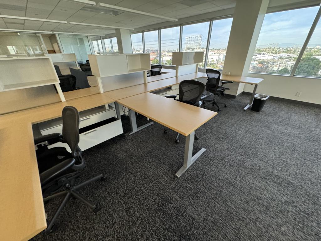 Description We have these Herman Miller Canvas cubicles that come with a benching power beam down the center for a 6' spine with up mounted overheads whiteboard and shelf combo that reaches to be 56" tall. Each station comes naturally as a 6'x7' with the 6'x2' surface on the spine and a 58"x29" height adjustable table as the return. Each station comes with a white 42"wide Herman Miller lateral file as well.
