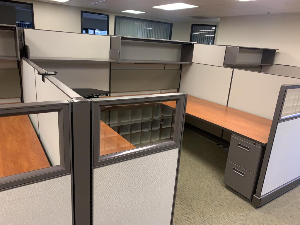 Description We have this Herman Miller A02 that came in as 67" on the spine and 53" tall on the aisle and wing panels in an 8'x9' size. However we can convert these stations to 6'x6', 5'x5' or 6'x8'. Let us know if you would like us to design these stations into your existing plan based on the inventory in stock.
