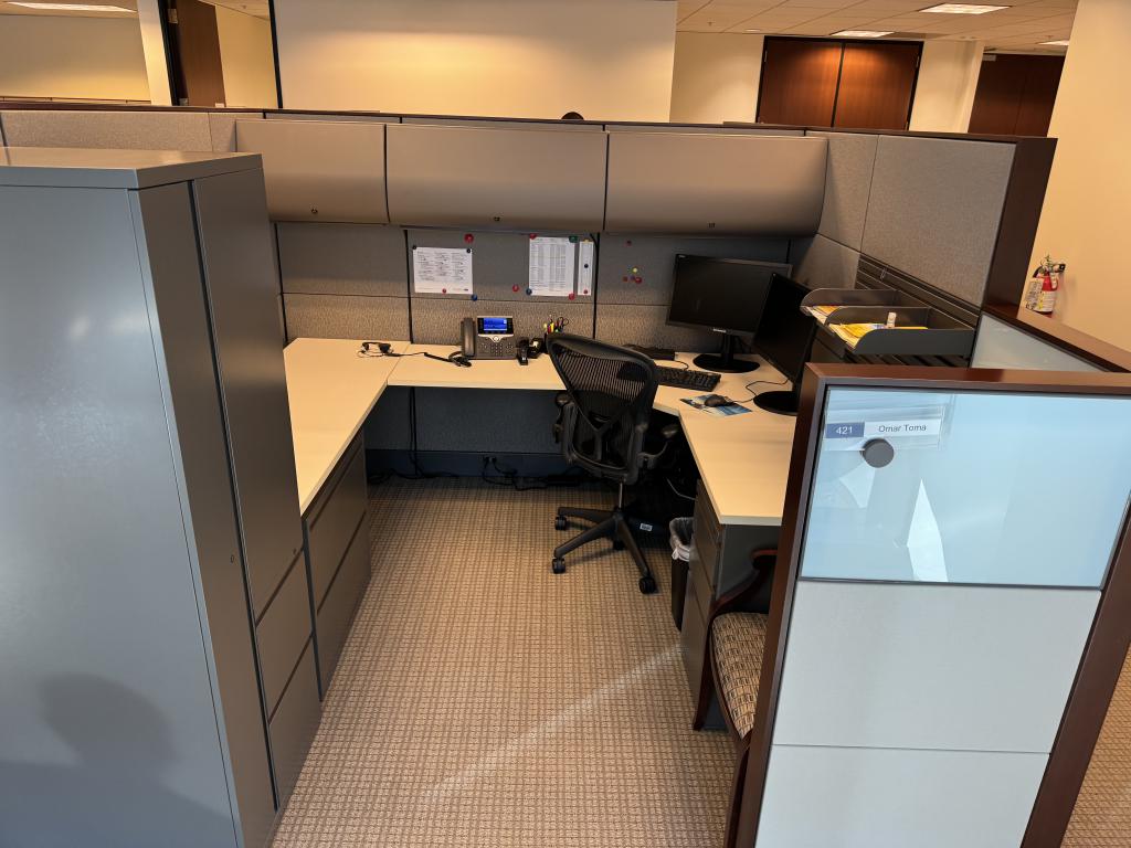 Although these stations come naturally in 8'x8' 70" and 54" tall hi lo configuration, they can be reconfigured to any size from 6'x6' to 5'x5' or 6'x8' and commination of. Stations come fully loaded, storage tower, lateral, overheads and more.