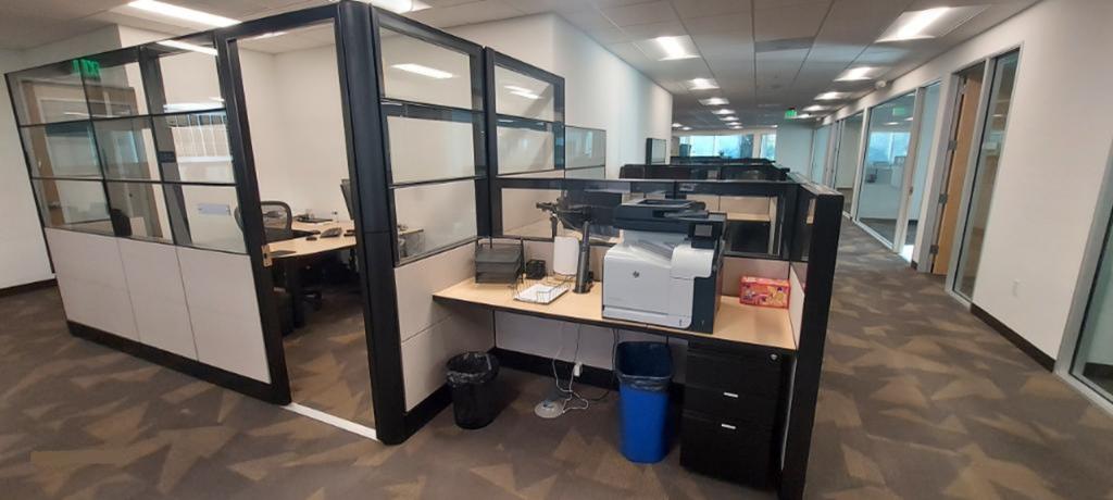 Description We have dark tone Herman Miller Ethospace Triple glass 86" tall with door. We can build this private office to meet your size needs for your office to spec. Each station comes with triple glass around it and a full closing door. You can choose to add more glass to the stations at $99 per pair as well should you want to. This modular private office gives your the functionality of having hard walls at a fraction of the price and without requiring permits!