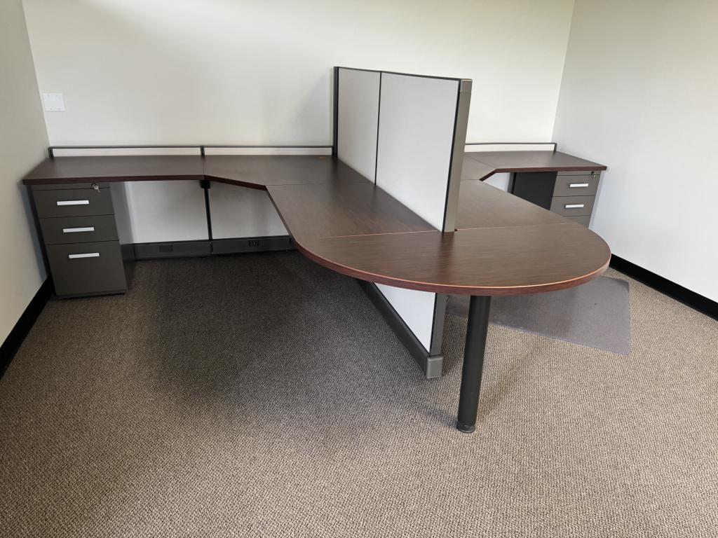 Description We have these Herman Miller A02 6’x6’ 53”x31” tall stations threat are in excellent condition. The fabric is a light tan and grey mix with medium tone trim. These stations come as teams set ups and can also be made to be back to back if need be.