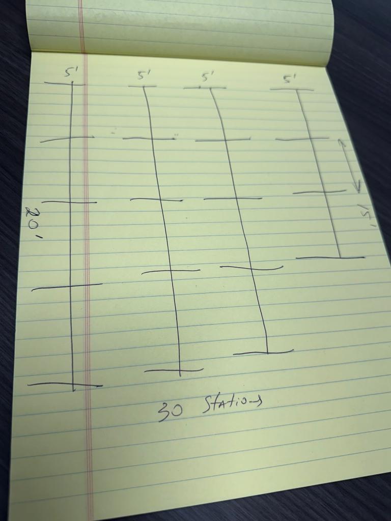 Each Station is 5' Wide x 30" Deep