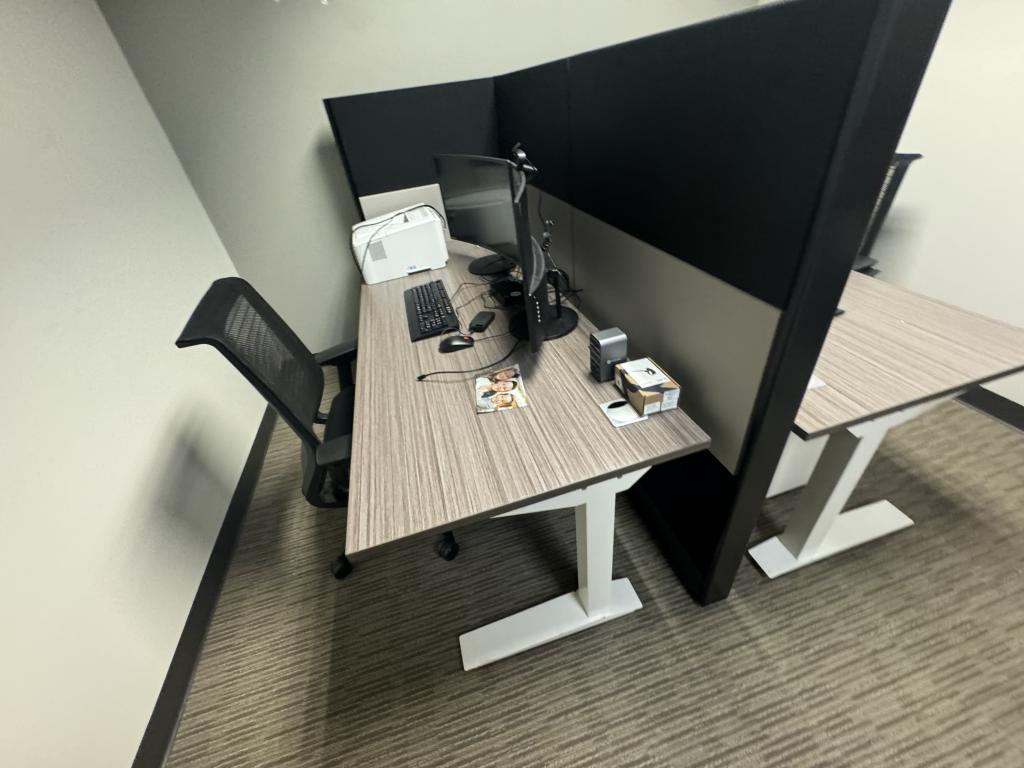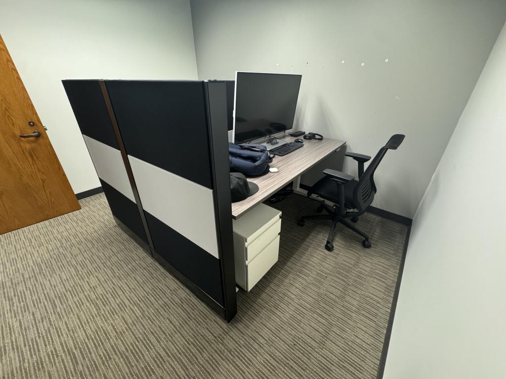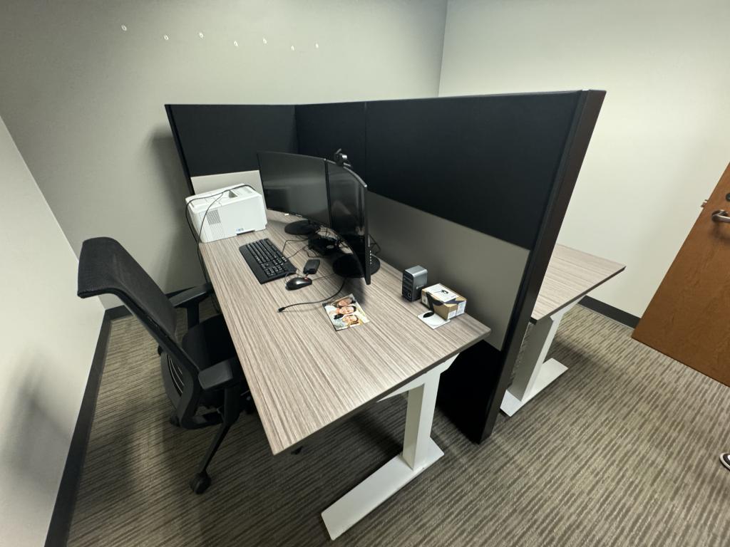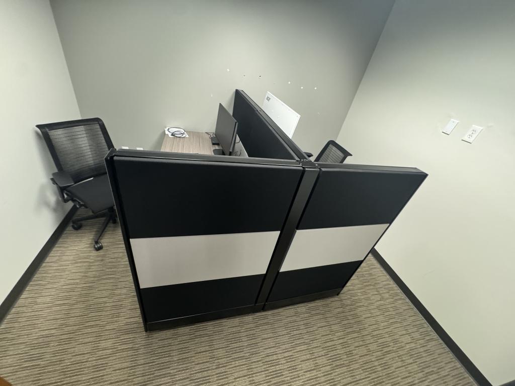 Description We have this Herman Miller Ethospace 6’x30”x54”T panel room divider. Each station comes with a height adjustable table included. Black, grey or white trim & fabric available.