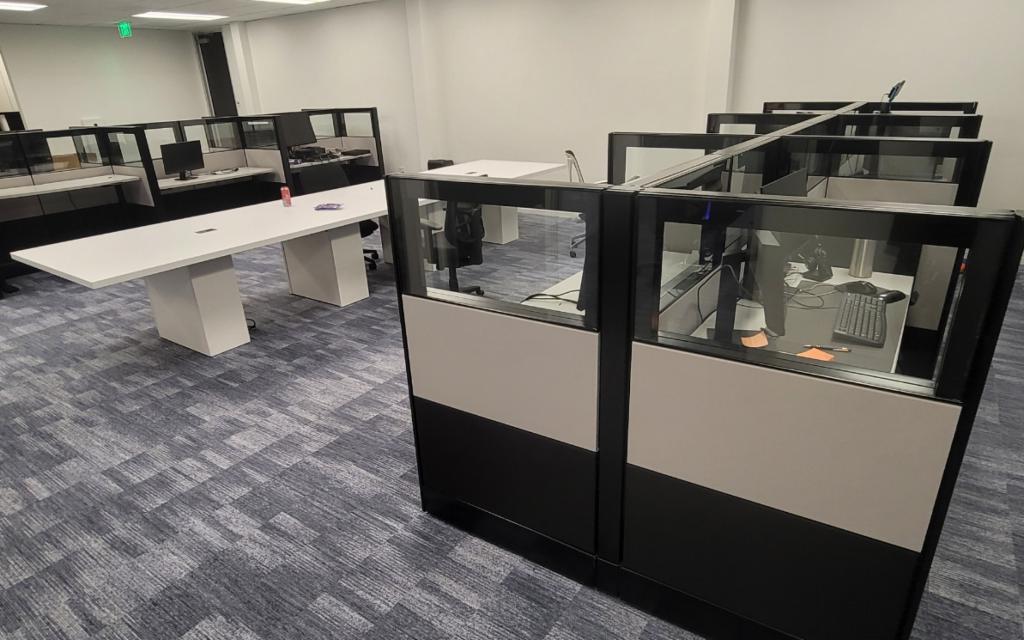 Description We have this Herman Miller Ethsoapce that is refurbished with new paint and fabric. Your choice of white, black or grey fabric or trim. These stations come in 60”x30” size at 54” tall. Each surface is height adjustable with 5’x2’ top. Top and base options based on stock.