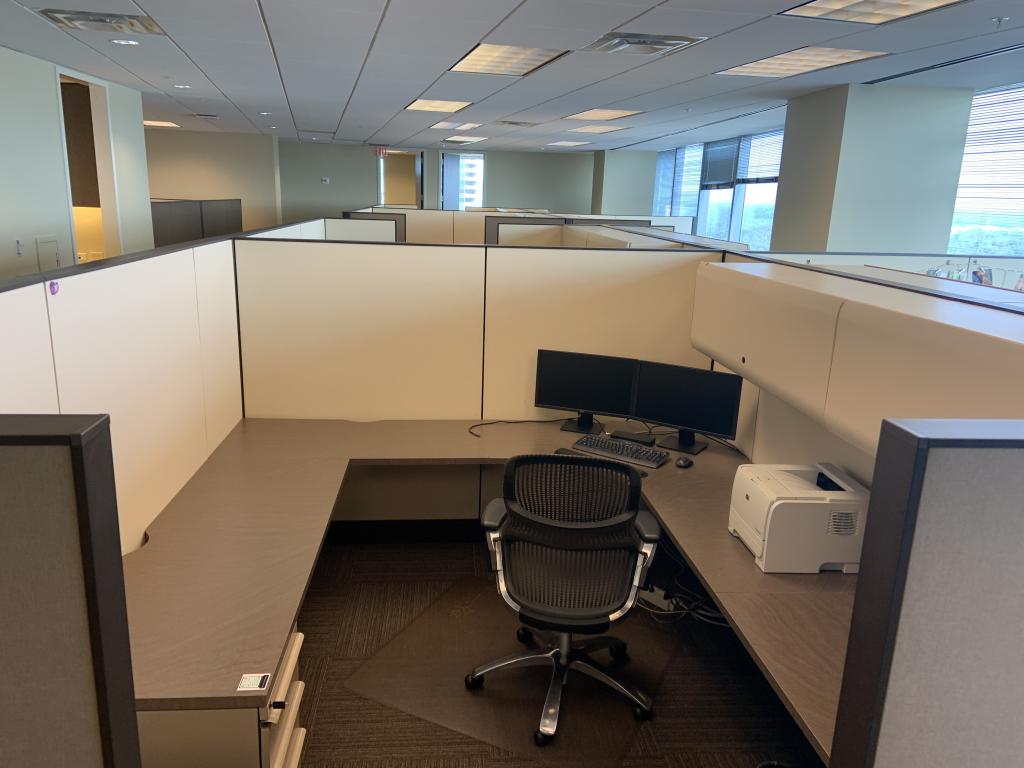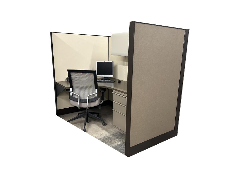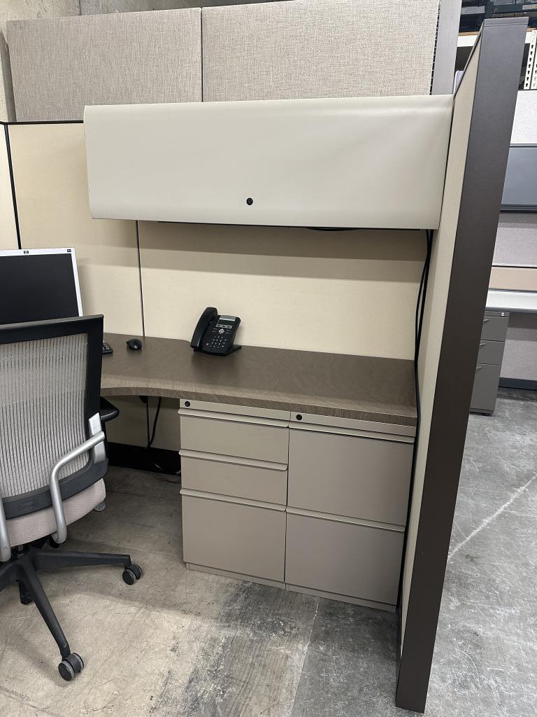 Description Check out the earth tone finishes on this Knoll Dividends inventory! Inside fabric is a light brown while outside is dark cocoa fabric with plenty of storage and huge amount of workspace in these 8x10' stations. We only have 10 stations so contact us before they are gone.