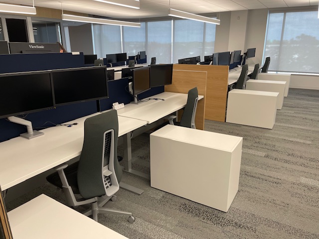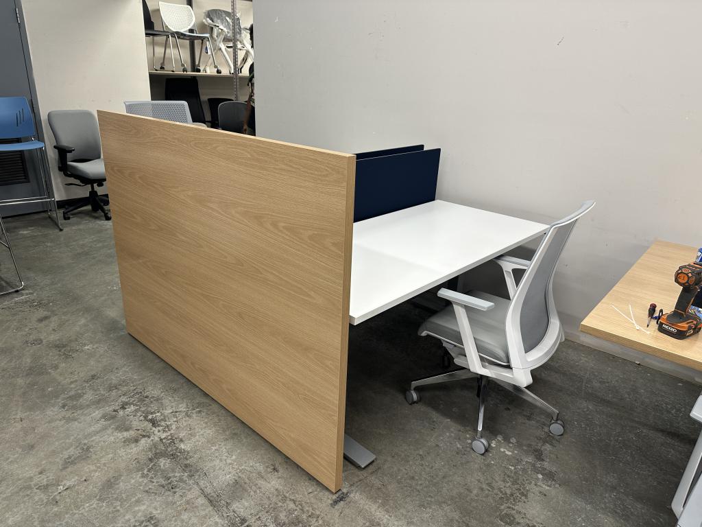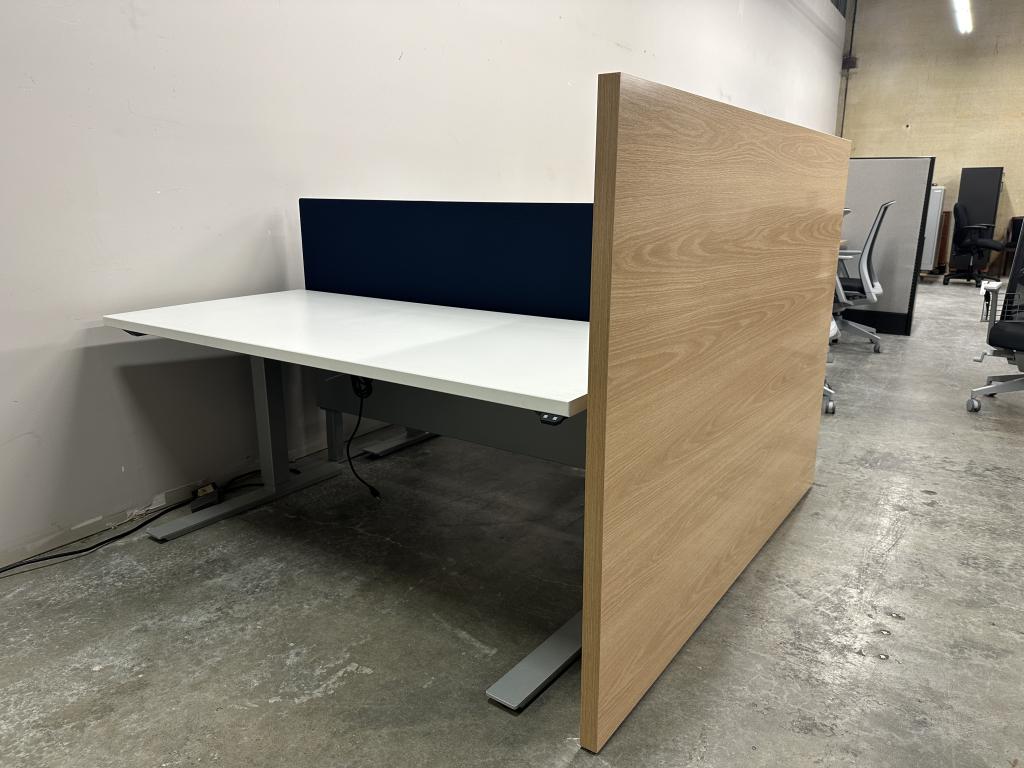 Description Check out this limited inventory of Haworth benching with height adjustable bases. These are only 5 years old and in excellent condition. We only have these available in 2 runs of 3 in a row(6 stations total), pack of 4 stations and pack of 6 stations. 16 stations total. Storage and seating can be added for small upgrade. Call us before these are gone!