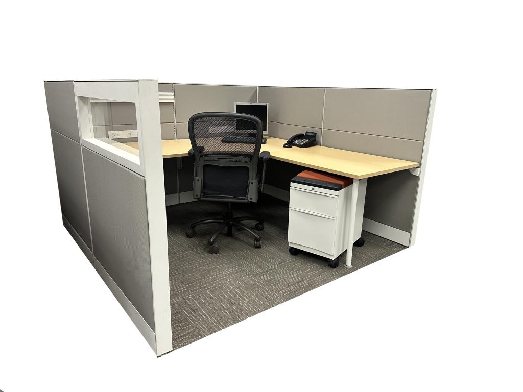 Description These Teknion Leverage stations are large, clean and ready to work for your office space. Stations have seated privacy, beltline power access and 1 storage pedestal. Contact us today for your quote!
