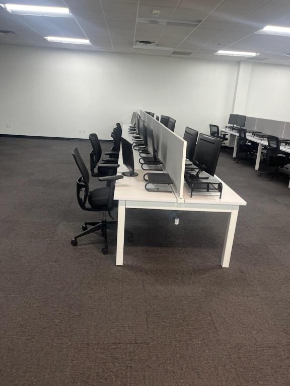 Description Beautiful Benching stations with White Frames and Gray screens. Setup in Pods of 10.