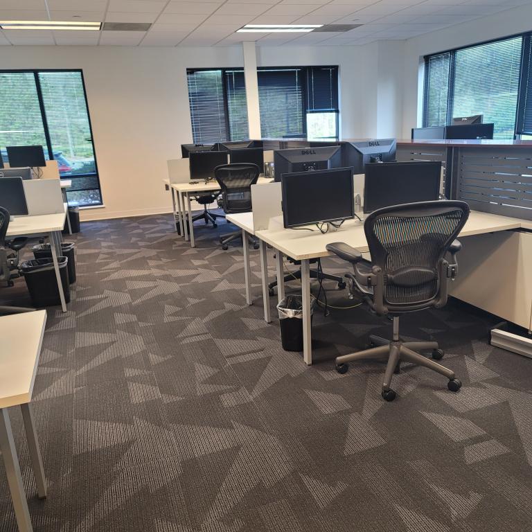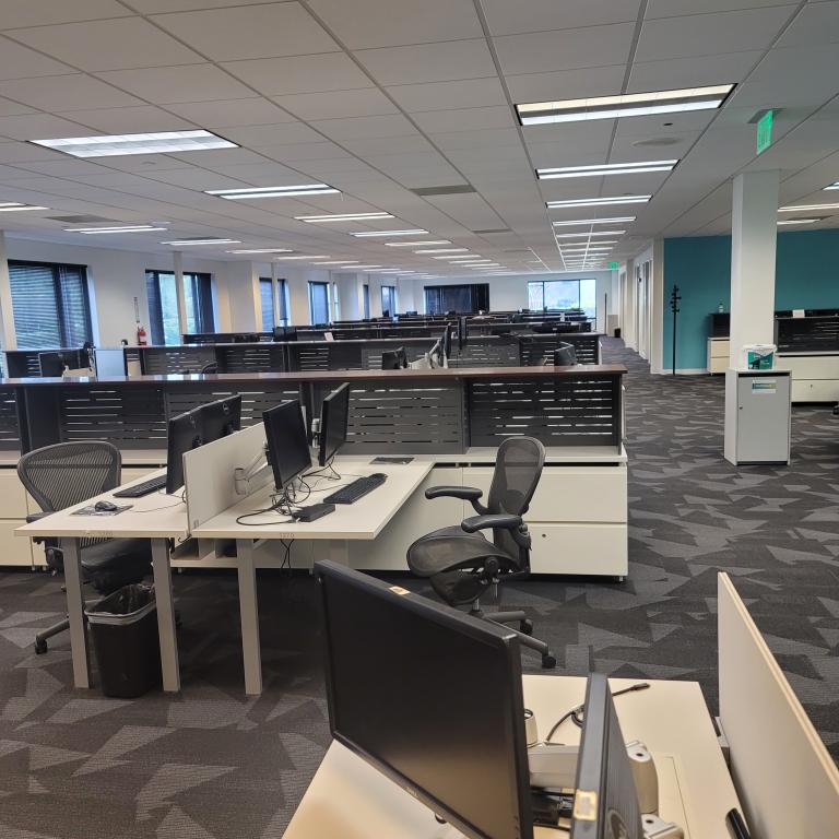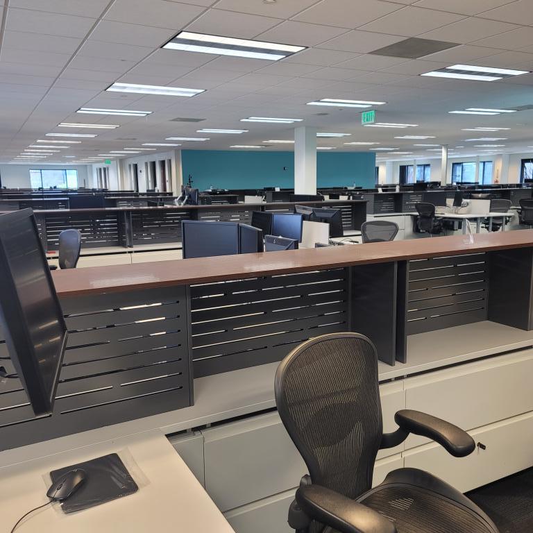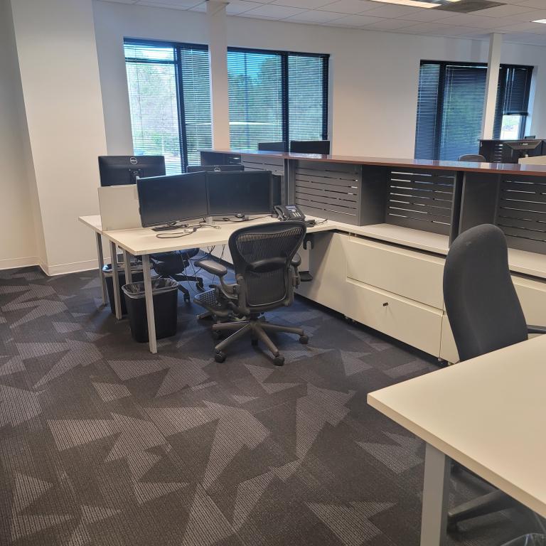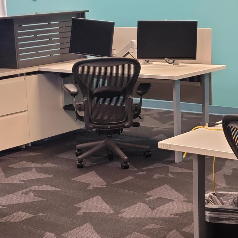 30x60 worksurface with reinforcement channel and dual monitor arm