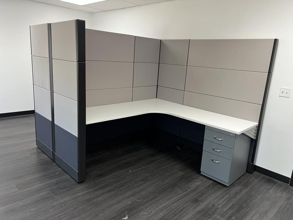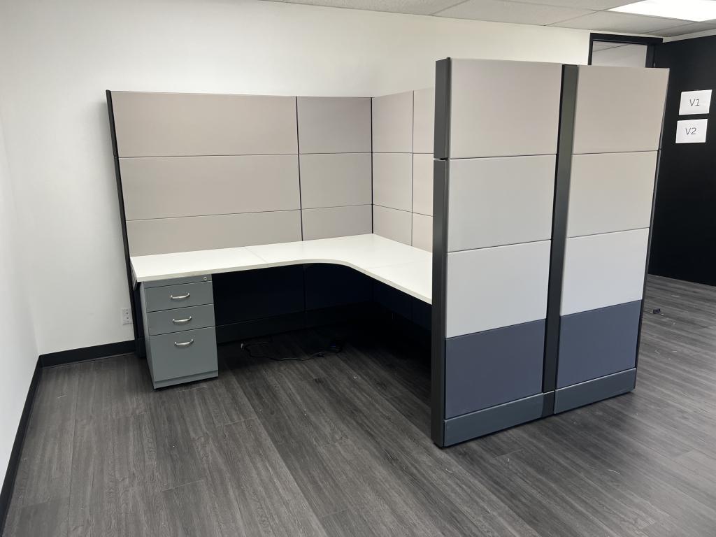Description We have these Herman Miller Ethospace 6’x6’x70” black & silver refurbished with new fabric and painted trim. These station are in excellent condition and come with power on the spline and a bbf pedestal with each station.