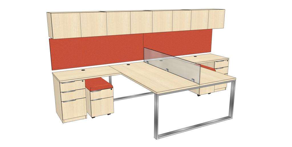 Description NEW Deskmakers two person desk setups. Great for maximizing an office space to accommodate two individuals while providing equal and adequate furniture and space for each side. Layouts, finishes, and sizing can all be modified to fit any space.