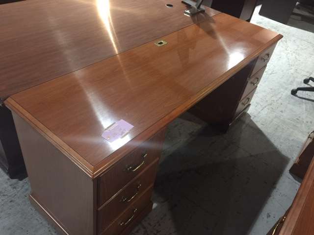 Description Featured here is a very nice Traditional Cherry Desk and Credenza Set. The set is in very good shape and still has a lot of life left in it.