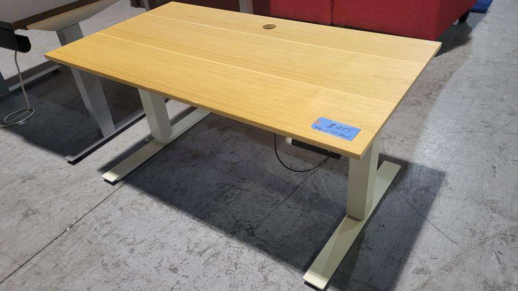 Description 4 ft Oak Sit-Stand Desk. Fully electric and adjustable for your comfort. Compact size with grommet hole for wire management. White metal base.