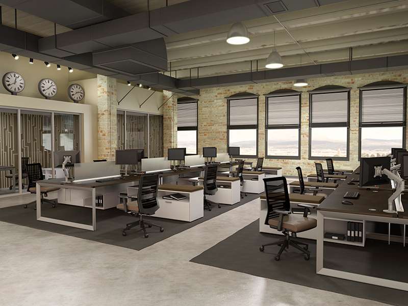 Description Modern desking & benching for your office. This desking & benching works for your open office environment. You can add glass, color, wood grains, etc. to meet your office design needs.