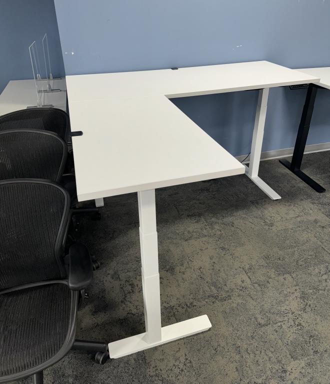 Description The ultimate in workspace flexibility with the L-shaped sit-stand desk. Its spacious design, complete with an added return, offers ample surface area. The entire desk adjusts seamlessly in height, promoting comfort and productivity. The scratch and stain-resistant white laminate top pairs beautifully with a white base.*WHS_0724*