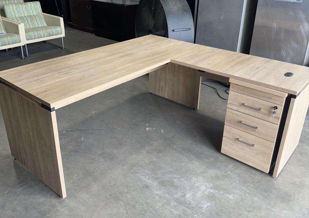 Description The Linea Italia Grain Modern L-shaped desk in an oak laminate finish effortlessly merges style with functionality. Designed to create a streamlined and efficient workspace, this desk features a box/box/file pedestal, offering versatile storage options for your office essentials. For added security, the pedestal includes a lockable drawer, ensuring your important documents and personal items are safely stored.*WHS_0824*