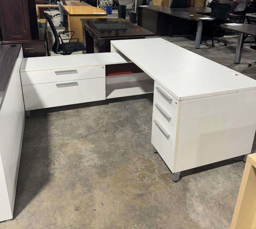 Allsteel 6′ White L Desk w/ Drop Down Return
