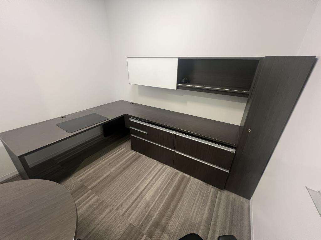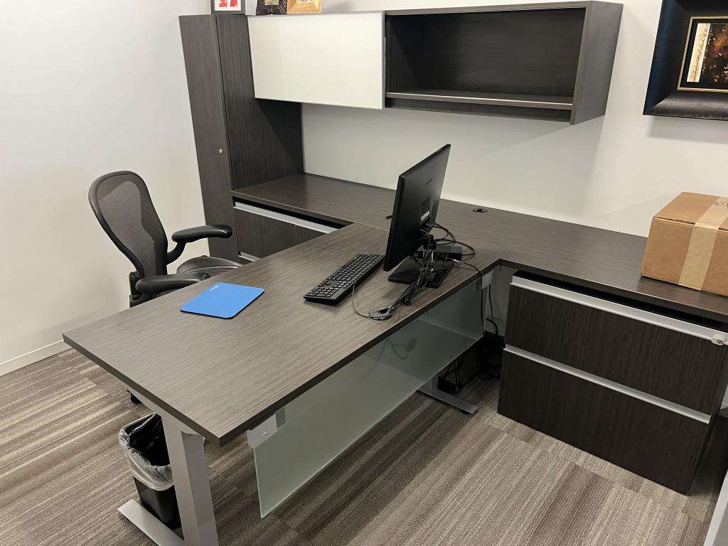Description Preowned Haworth Masters Series Private Office Located in Atlanta, Ga. These desks can be set up in an L or T Shaped configuration. See pictures for details Surfaces 24" X 99" Return 30" X 54" Desk Storage: 72" Wall-mount Overhead 36" Combo Cabinet 30" 2 Drawer Lateral File 12" Wide X 24" Deep Storage Tower Configurations 30" X 54" Desk Stationary- 32 30" X 54" Desk Pneumatic HAT- 11 (Min Height 28" Max Height 46") 30" X 54" Desk Electric HAT- 1 No Desk- 9 In addition to these desks, we also have: U Shaped (Multiple sizes)- 4 42" Round Tables- 4 *CLR11.24
