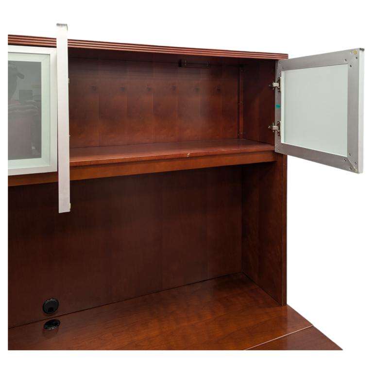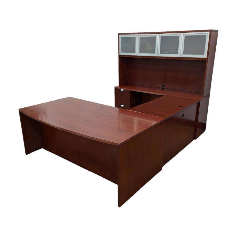 Description Gunlocke LH U-Shape Bow Front Desk w/ Hutch and Credenza - Cherry SKU: KI240182