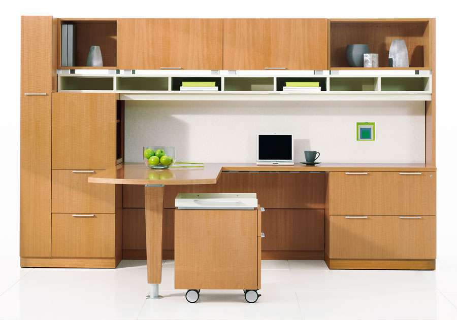Description Collective Office enhances a user's day-to-day work experiences through a variety of new footprints, desk shapes and a multitude of functional options. A user-oriented approach to design inspired innovative funtions such as off-modular work tools and tool drawers to store frequently used items within immediate reach. Intermittently used items are stowed out of sight in specially designed equipment cabinets. Designed by CSD Studio. Laminate or Veneer options available
