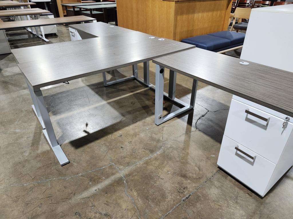 Description 64x22 desk front electric sit stand, 42 inch stand alone return.