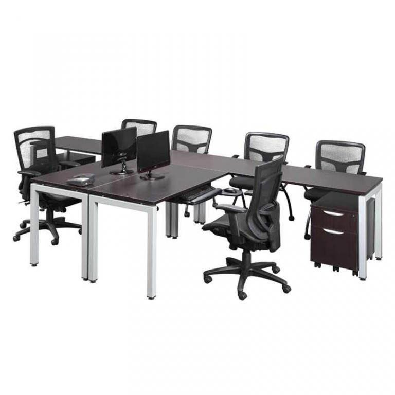 Description Elements by PCF new shared benching/desking systems feature a heavy-duty steel frame available in Silver and your choice of Cherry, Espresso, Maple and Modern Walnut laminate finishes. Available in a single desking unit or or a shared system. Additional storage components available. Please call for details.