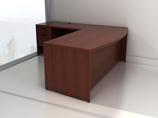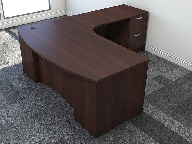 Description Desks in dark finishes such as mahogany, dark cherry, chocolate pear, and graphite wood. Great laminate furniture at affordable pricing. Quick-ship items have a 5 day lead-time. Non quick-ship items have a 3-week lead-time.