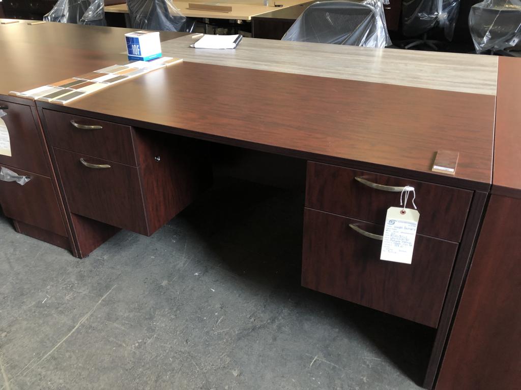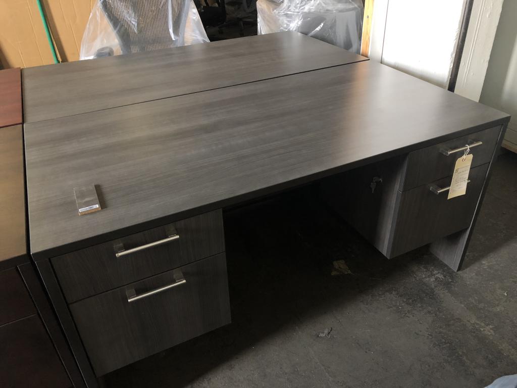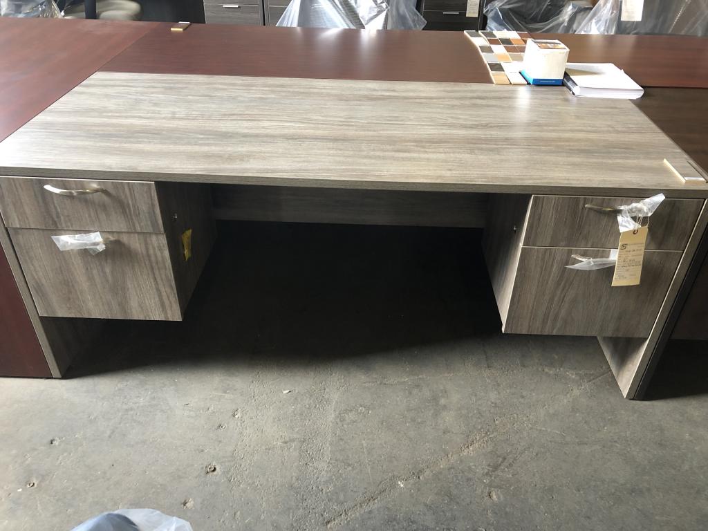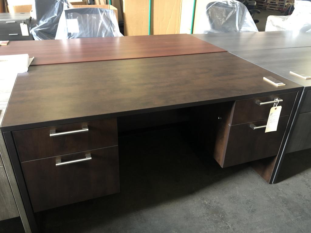 Description This double pedestal desk has two box/file pedestals with a 3/4 height modesty. Available in multiple laminate colors. We have several straight desks in-stock. Quantity discounts are available