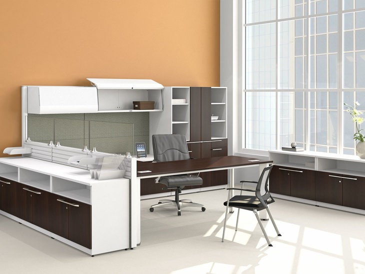 Description Update your office with modern lines your staff will love at an affordable budget. These desks align employee comfort with L-shaped or U-shaped room to work on any project. These modern, value-oriented desks creatively optimize square footage and provide a surface for serious productivity.
