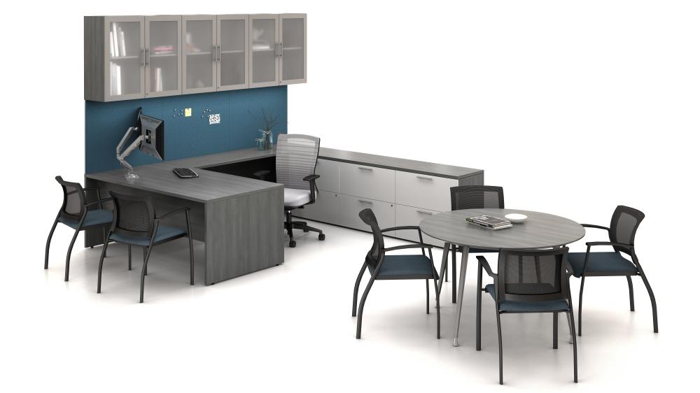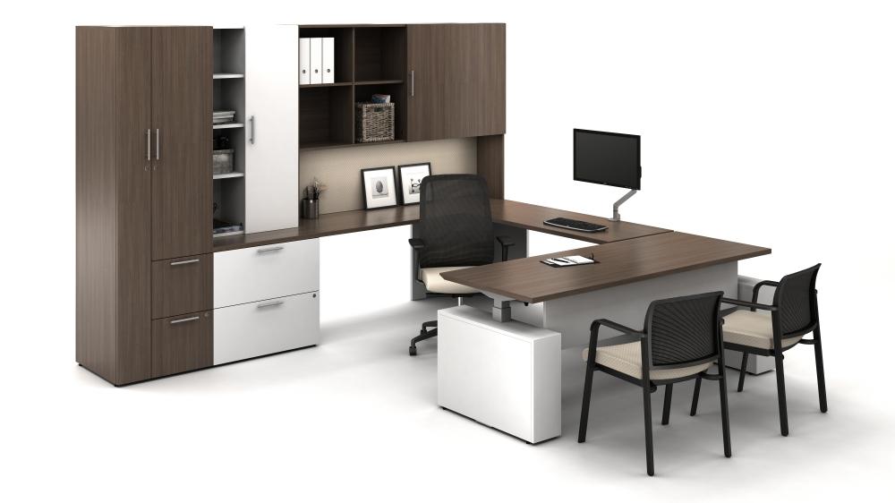 New Executive Office Desks available in L Shape, U Shape or Straight. Many storage options to choose from; hutches, credenzas, bookcases and lateral files to make your office suite complete.
