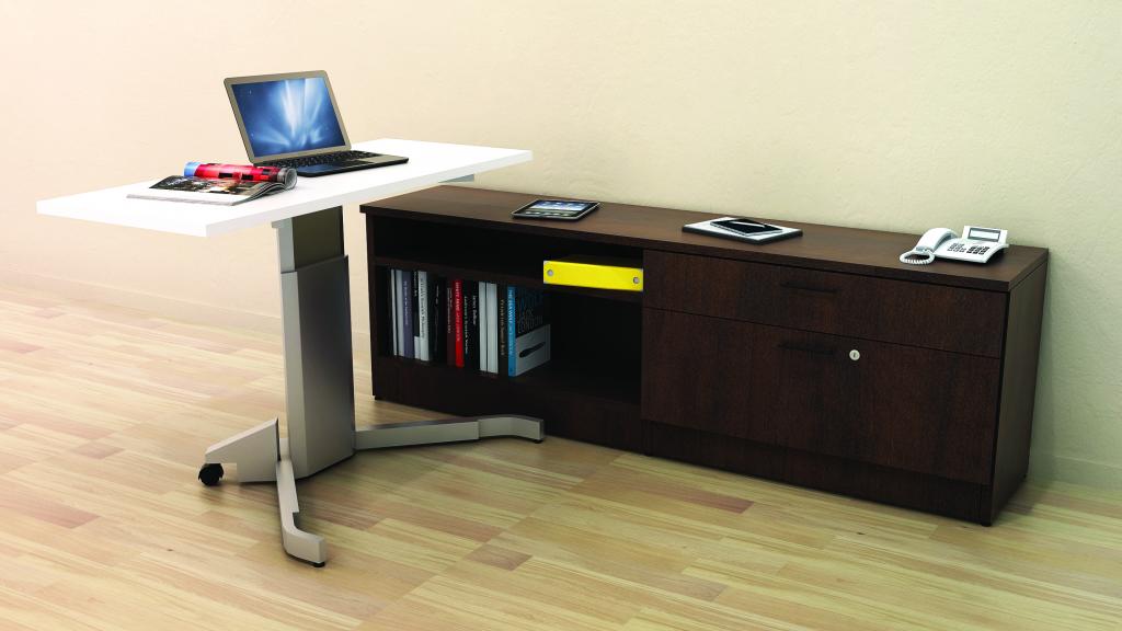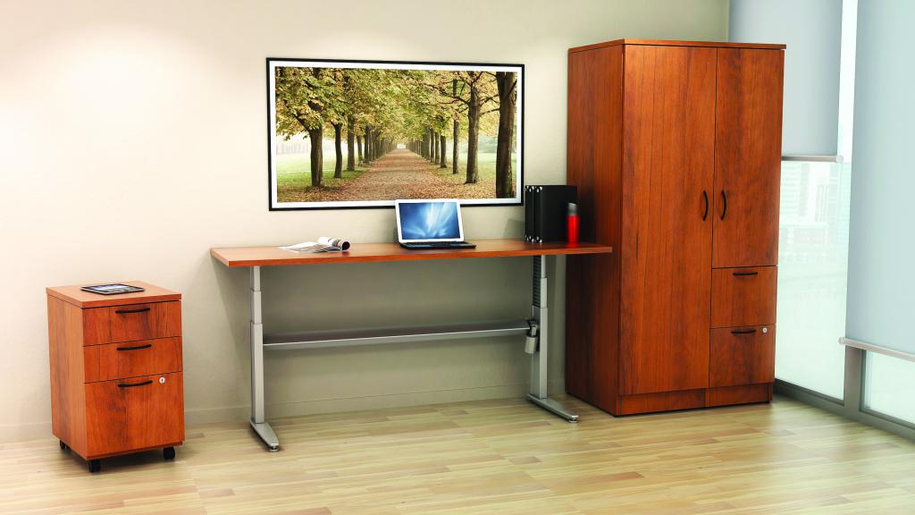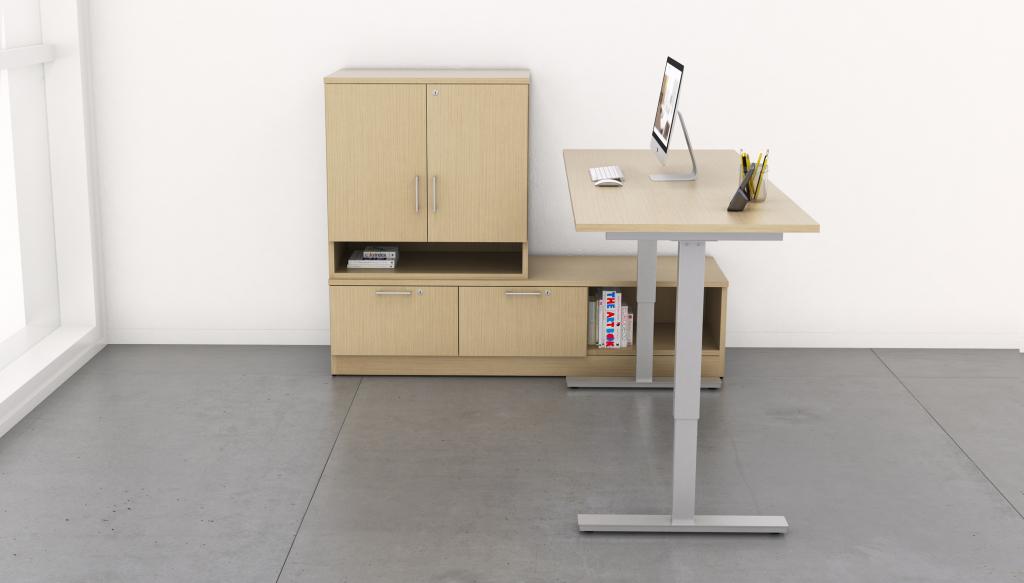 Description The IOF Height Adjustable Desk sets the standard for sit/stand desk solutions. This height adjustable desk allows you to customize your comfort with a number of sizes and shapes available. These desks can also be paired and matched with a number of other IOF pieces such as matching lateral files, hutch's, credenza's, pedestals, and much more!