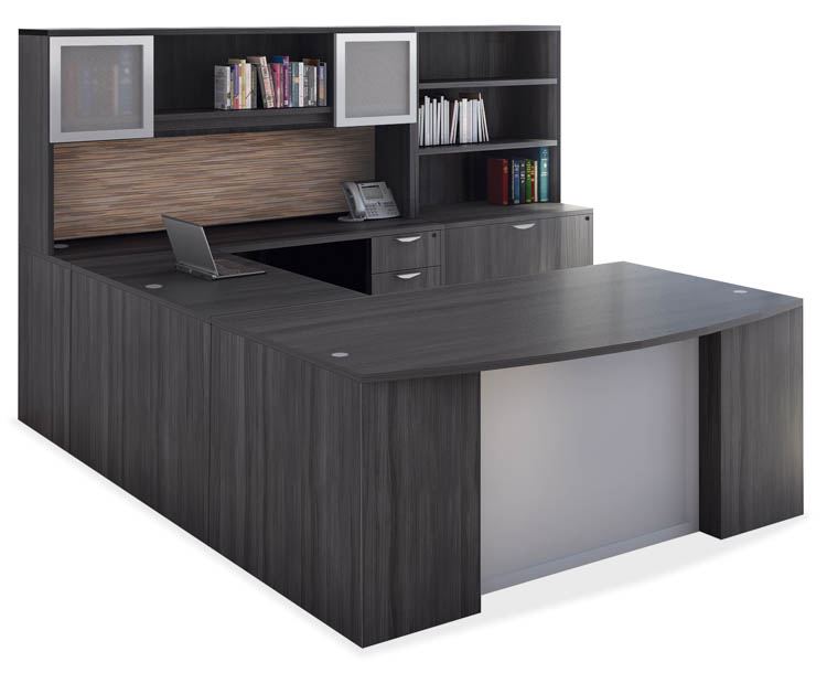 Description Beautiful u shaped desk with a lateral file, a pedestal, and a tack board. Overall dimensions are 112"W x 106 1/2"D x 65 1/2"H