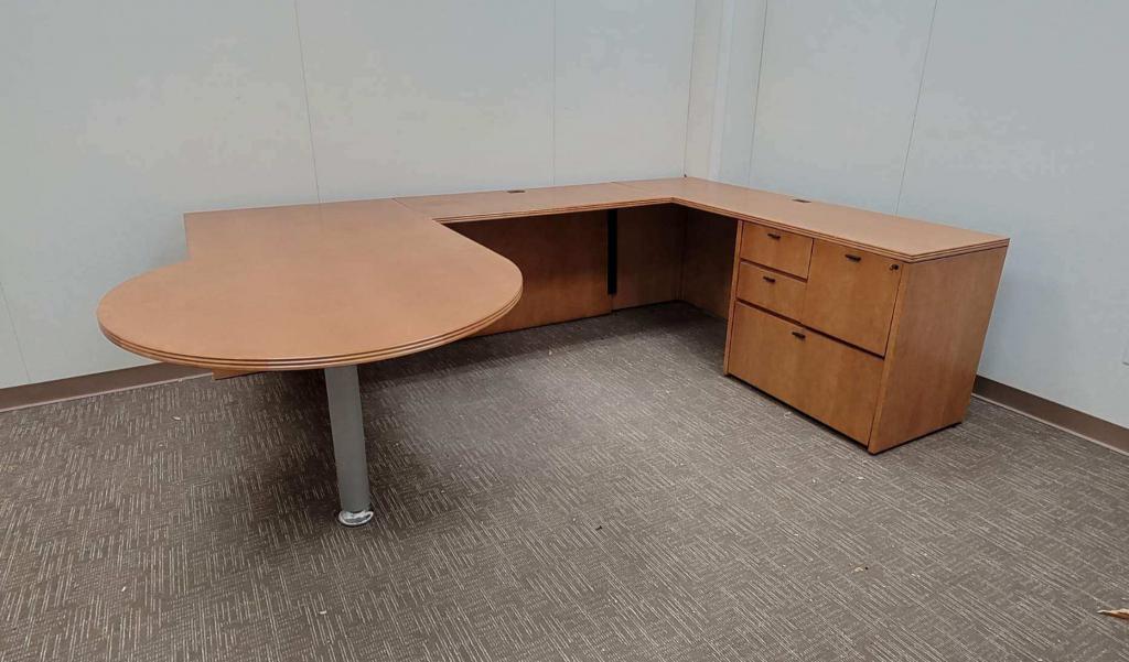 Description P-Top Desk with light cherry finish, with mixed lateral file. Dimensions 6x9x6. In great condition!