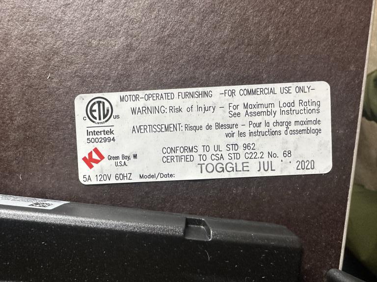 Hello we have these excellent condition 60"x30" KI Height Adjustable Electric Table with white tops that are power capable. Each worksurface has 2 troths for data or power to be inserted under the metal data troth that is suspended under each surface. The bases are black and made by KI being only a couple years old they are in excellent condition.