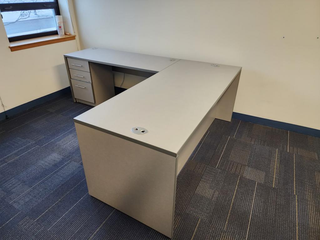 Description ******* NOTE: LEFT Hand Return shown in picture****** 30x72 Box,Box,File Left Pedestal Desk -Grommet - Lock w/ Keys 24x60 Box,Box,File Right Return - Grommet - Lock w/ Keys