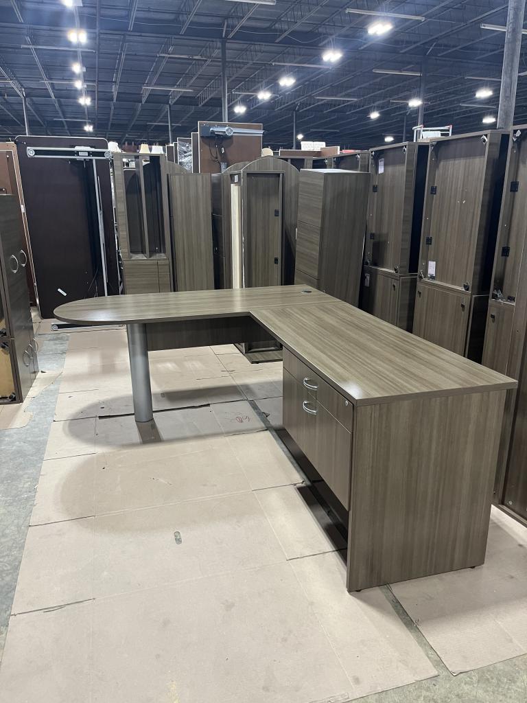Description Now Available, Indiana L Shaped Desk with a beautiful Virginia Walnut finish, these desks are a great way to add a modern touch to any office space. This desk includes a 2 Drawer Lateral File. ( Actual Depth is 86" ) *WHS* 01/24 - 6 on long term rental