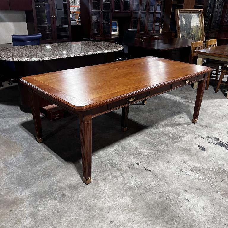 Description Now Available, 7' Table Desk designed with a cherry finish. This desk offers an expansive workspace ensuring room for large tasks and projects. *WHS*